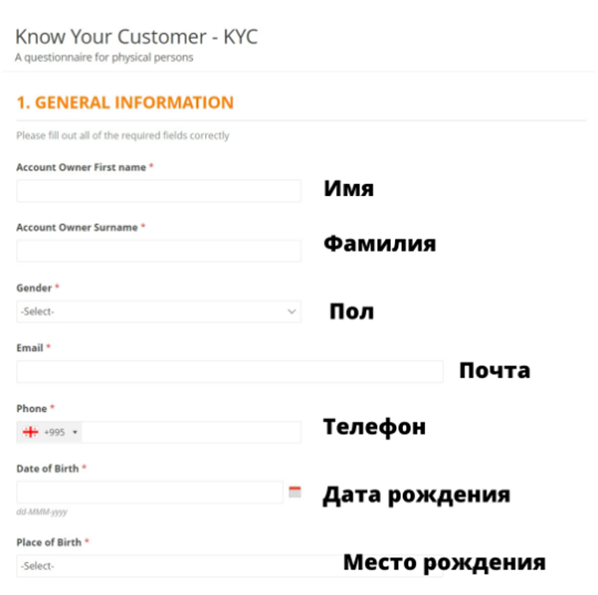 Инструкция по заполнению нового KYC в Bank of Georgia